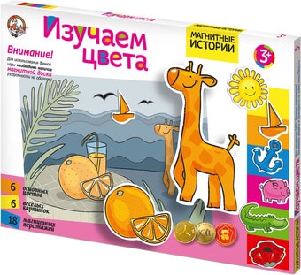 | Информация | Дополнительный набор отличается от основного отсутствием магнитной доски. Если у вас уже имеется любая игра из серии «Магнитные истории» или «Пифагорики», планшет от нее подойдет к этому дополнительному набору и даст вам возможность сэкономить на покупке.Знакомство с цветом, кажется что может быть проще, но на самом деле все не так.Представьте себе, что Вы собираетесь выучить незнакомый Вам язык - как сложно запомнить необычные слова. Что-то подобное происходит и с ребенком, которому Вы показываете предмет и называете его цвет. Сколько вокруг малыша в этом мире вещей и у каждой свой цвет. Совсем непросто ему с этим разобраться, да еще и запомнить название цветов. Зато, сколько гордости у родителей и радости у ребенка, когда он с уверенностью и правильно решает поставленную перед ним задачу. Родителям подходить к этому вопросу надо очень осторожно и не отбить у малыша желания к развитию и обучению. Сначала нужно познакомить малыша с четырьмя основными цветами: красным, желтым, зеленым и синим. Закрепить его знания и только затем добавлять другие цвета и оттенки. Чтобы помочь Вам в решении данной задачи мы и создали игру "Изучаем цвета". |
