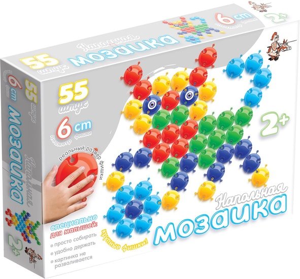 | Информация | В набор входит самый "богатый" в данной серии комплект из 55-ти больших фишек, позволяющий маленькому творцу максимально полно реализовать свою фантазию и творческие способности. И именно из-за большого количества фишек данная мозаика стоит несколько дороже, чем другие мозаики данной серии.Как и все мозаики данной серии, эта напольная мозаика предназначена специально для самых маленьких детей возрастом от 2-х лет. Крупные фишки диаметром 6 см безопасны для ребенка и их удобно держать в руке. Благодаря специальным креплениям фишки легко соединяются между собой , но в то же время собранная картинка достаточно прочна и не разваливается если ее необходимо приподнять или передвинуть. Эту мозаику удобно хранить - для этого достаточно сложить фишки "столбиком".С помощью напольной мозаики Ваш ребенок быстро и с легкостью соберет множество разных сюжетов, разовьет творческие навыки и потренирует мелкую моторику рук. |