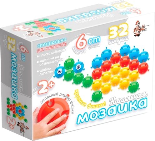 | Информация | Как и все мозаики данной серии, эта напольная мозаика предназначена специально для самых маленьких детей в возрасте от 2-х лет. Крупные шести-сантиметровые фишки безопасны для ребенка и хорошо ложатся в ладошку. Рекомендуемые картинки достаточно лаконичны для того, чтобы малышу не наскучило собирать любую из них. Специальные крепления легко соединяют фишки между собой, но в то же время делают картинки достаточно стабильными, их можно двигать, приподнимать и даже осторожно переносить. А когда ребенок закончил играть мозаику достаточно просто сложить стопкой, поэтому они не потеряются и займут мало места при хранении. |