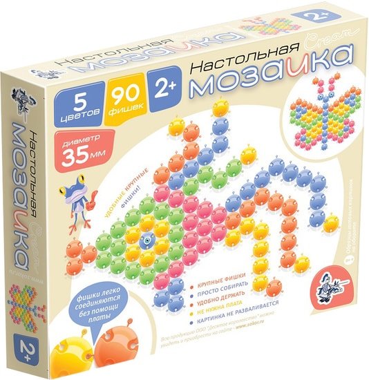 | Информация | Это самая необычная пластмассовая мозаика, для нее не требуется специального поля, достаточно ровной поверхности на полу или столе. 90 фишек пяти нежных кремовых цветов имеют размер 35 миллиметров, между собой они соединяются при помощи специальных замочков, которые позволяют не развалиться собранной мозаики даже при переноске. Специальная форма фишек позволяет складывать их стопкой, что очень удобно при хранении.Эта мозаика обязательно понравится любому ребенку старше двух лет. |
