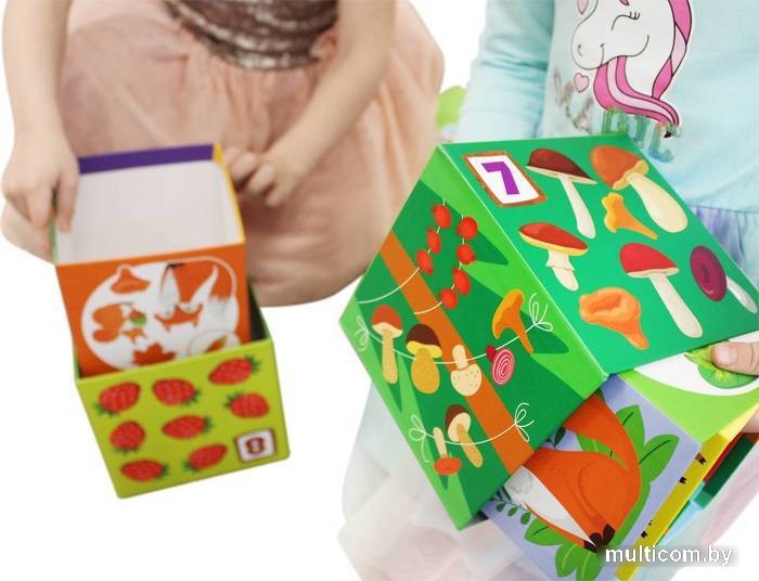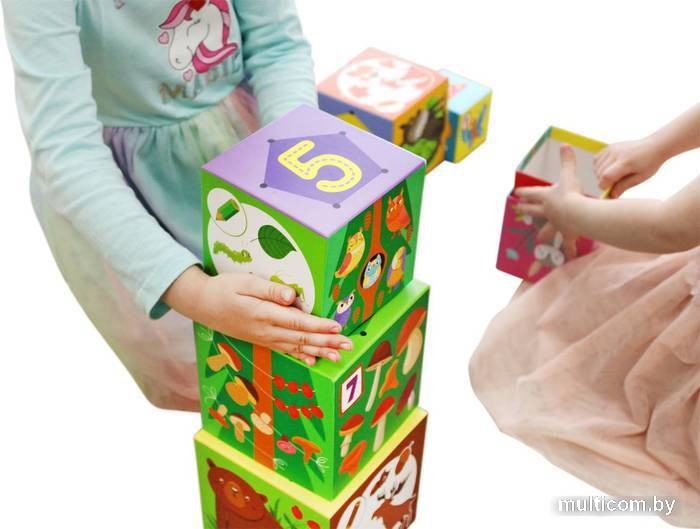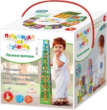 | Информация | Развивающая пирамидка из кубиков «Лесные жители» 8 в 1 — отличный тренажер, позволяющий в игровой форме познакомить вашего малыша с животными, цифрами, цветами, потренировать навык конструирования, а яркие и крупные картонные кубики-коробочки с картинками превратят занятия в увлекательный процесс! Комплектация: кубики-коробочки картонные — 8 шт (размер граней соответственно 14, 13, 12, 11, 10, 9, 8, 7 см). Высота пирамидки в собранном виде — 84 см. Рассмотрите кубики вместе с малышом. Обратите его внимание на то, что у каждого из восьми кубиков 5 граней. Маленькие кубики вкладываются в кубики побольше, таким образом все кубики можно сложить друг в друга. Каждая грань кубика подчинена определенной логике: одна из них дает представление о цветах (на ней изображены предметы одинакового цвета), вторая — о количестве (на ней указана цифра и соответствующее количество предметов), третья знакомит малыша с обитателями леса, насекомыми и растениями, четвертая представляет собой части дерева, которое ребенок может собрать из кубиков, устанавливая их друг на друга, а на дне кубика изображена цифра (от 1 до 8). Кубики сделаны из плотного, но лёгкого картона, поэтому, если ребенок уронит построенную башню на ножки, это не причинит ему вреда. Наши кубики универсальны: вы можете использовать их как для строительства, так и для выкладывания в горизонтальные цепочки, в зависимости от того, какую тему вы изучаете с малышом. На начальных этапах вы можете изучать и по одному кубику, рассматривая его грани и обсуждая с ребенком изображения. Постепенно вводите все новые кубики, чтобы в дальнейшем малыш смог без труда ориентироваться во всех элементах игры. Пирамидка из кубиков «Лесные жители» 8 в 1 развивает зрительную память, логику, моторику рук, координацию движений, пространственное мышление и сенсорику. |