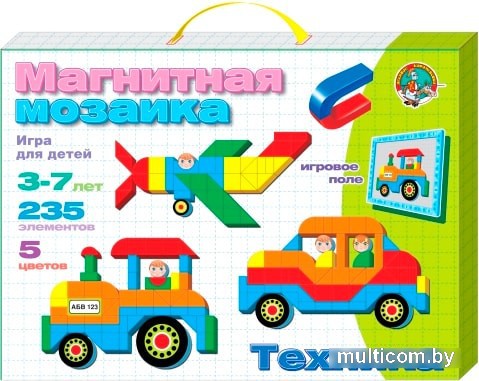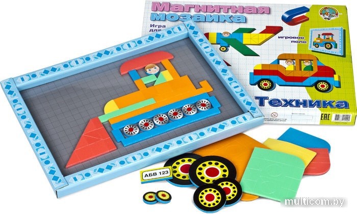 | Комплектация | - элементы различной формы, включая дополнительные, на магнитной основе, 5 цветов (желтый, красный, синий, зеленый, светло-коричневый) - 235 шт;- магнитная доска , 310х205 мм с разметкой поля - 1 шт. |