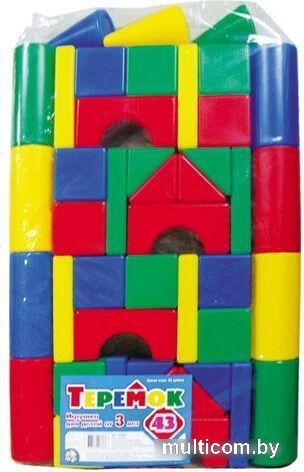 | Информация | Строительный набор «Теремок 43» в пакете из выдувной пластмассы состоит из: Кубик — 8?8 см — 8 шт. Большой цилиндр — 8?16 см — 8 шт. Малый цилиндр — 8?8 см — 4 шт. Конус — 8?13 см — 2 шт. Треугольная призма — 8?8 см — 8 шт. Прямоугольная призма - 16?8?3 см — 8 шт. Шар — 8 см — 1 шт. Арка — 16?8?8 см — 4 шт. |