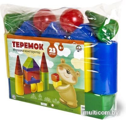 | Информация | Набор из пластмассовых блоков, которые ребенок сможет использовать для строительства первых игрушечных домиков. Блоки имеют разную форму от стандартного куба до конусов и арок, поэтому, пофантазировав, из них можно создать много необычных конструкций. Детали конструктора окрашены в четыре основных цвета, изготовлены из безопасных материалов. Игра с набором развивает сложные движения рук, образное мышление и воображение ребенка. Набор упакован в удобную для хранения сумку из ПВХ. Набор конструктора Теремок 23 элемента из выдувной пластмассы в ПВХ сумке состоит из: Кубик — 8?8 см — 5 шт. Большой цилиндр — 8?16 см — 2 шт. Малый цилиндр — 8?8 см — 2 шт. Конус — 8?13 см — 2 шт. Треугольная призма — 8?8 см — 7 шт. Прямоугольная призма — 16?8?3 см — 2 шт. Шар — 8 см — 2 шт. Арка — 16?8?8 см — 1 шт. |