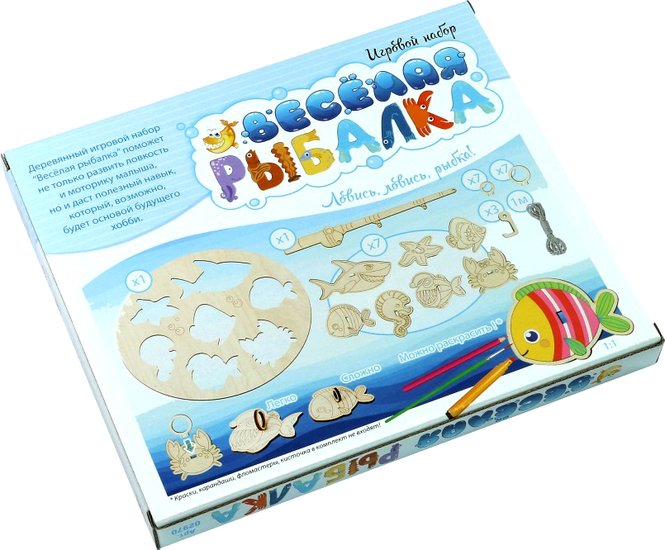 | Информация | Отправляйтесь на веселую рыбалку с деревянным игровым набором от «Десятого королевства»! Состав набора: Овальное игровое поле (28х24 см.) Рыбки — 7 шт. (от 8 до 12 см. в длину) Удочка — 1 шт. (24,7 см. в длину) Кольца малые — 7 шт. Кольца большие — 7 шт. Крючки — 3 шт. Нить — 1 м. Игра собирается по принципу простого деревянного конструктора: 1. Вставьте рыбок в игровое поле 2. Установите кольца малого или большого размера в специальные отверстия в фишках с рыбками (размер кольца меняет сложность игры) 3. Подготовьте удочку к рыбалке: проденьте нитку и привяжите к ней крючок Готово! Можно играть! По желанию можно раскрасить рыбок в любимые цвета. Обратите внимание, что краски, карандаши, фломастеры и кисточка в комплект не входят. Игра с набором «Веселая рыбалка» предназначена для детей от 3-х лет и развивает меткость и мелкую моторику рук ребенка. Посмотрите весь ассортимент деревянных игр от «Десятого королевства» на нашем сайте. |