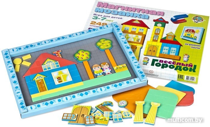 | Информация | Название магнитной мозаики «Веселый городок» говорит само за себя. Из этого набора можно собрать большое количество веселых разноцветных и симпатичных домиков. А 29 дополнительных элементов хорошо дополняют и украшают «веселый городской пейзаж».Игровое металлическое поле разделено на клетки, что значительно облегчает собирание картинок.Если ребенку стало не интересно собирать изображения, которые прилагаются к игре, он может пофантазировать сам, таким образом развивая образное мышление. Также магнитная мозаика конструктор хорошо развивает координацию движений мелкую моторику рук, творческие способности и воображение детей от 3 до 7 лет. |