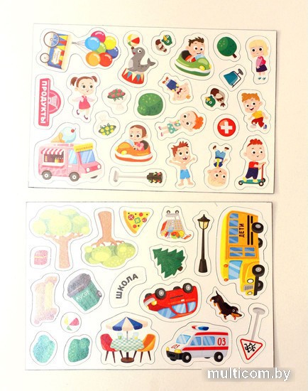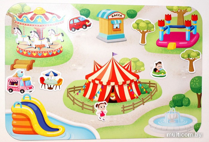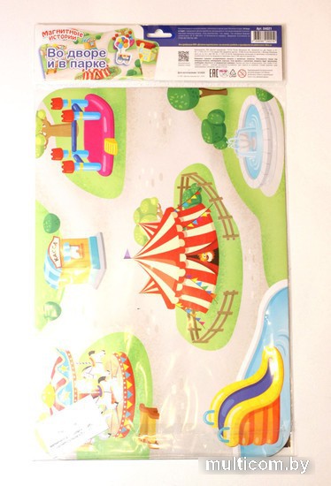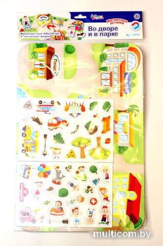 | Информация | Изучайте городские локации в процессе увлекательной игры с магнитным набором «Во дворе и в парке»! Расставляйте на поле магнитные здания, предметы и персонажей, восстанавливая ландшафт городского парка и двора. Игра предназначена для детей от 3 лет. Состав набора: • двустороннее игровое поле из ламинированной жести – 1 шт. (43 х 29 см) • магнитные элементы – 42 шт. (от 2,5 до 7 см) • маркер – 1 шт. • инструкция Как играть? На одной стороне игрового поля изображен городской парк развлечений, а на другой – дворик в жилом районе. На каждой картинке изображены различные здания и постройки и оставлено много свободного места для наполнения фонов магнитными элементами из набора. Среди магнитных элементов есть различные персонажи, предметы, деревья и кустарники, транспортные средства, которые ребенок может размещать на подходящие участки на игровых фонах. С набором можно разыгрывать различные сценки, придумывая их на ходу, сортировать объекты по соответствию фоновой картинке и т.д. Магнитные элементы удобно крепятся к игровому полю – их можно беспрепятственно передвигать по поверхности поля, тем самым приводя игру в движение. Магнитная игра «Во дворе и в парке» развивает фантазию и логику, а также тренирует речь и мелкую моторику. Посмотрите весь ассортимент игр серии «Магнитные истории» в категории «Магнитные доски и планшеты» на нашем сайте. |