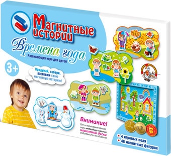 | Информация | Дополнительный набор отличается от основного, артикул 01542, отсутствием магнитной доски. Если у вас уже имеется любая игра из серий «Магнитные истории» или «Пифагорики», планшет от нее подойдет к этому дополнительному набору и даст возможность сэкономить на покупке. Познавательная для Вашего ребенка игра, позволяющая в игровой форме познакомиться с временами года, научиться понимать, чем зима, весна, лето и осень отличаются друг от друга. Выберите игровое поле, закрепите его на доске с помощью магнитных уголков и помогите ребенку подобрать соответствующие выбранному полю фигурки. Магнитная основа поля позволяет фигуркам хорошо держаться на нем. Предлагается два варианта игры: 1. Ребенок расставляет фигурки в соответствии с временем года. 2. Взрослый создает намеренно неправильную "историю" и просит малыша найти ошибку. Надеемся, что наши "Магнитные истории" помогут вашему ребенку в познании окружающего нас многогранного и разнообразного мира! |