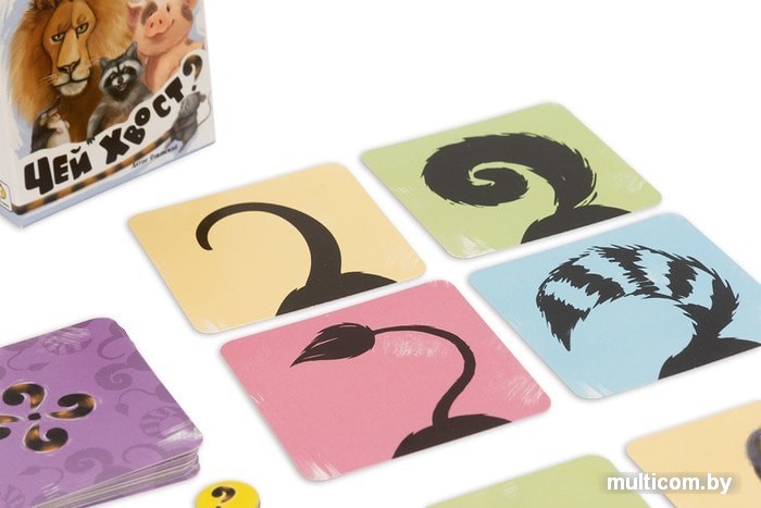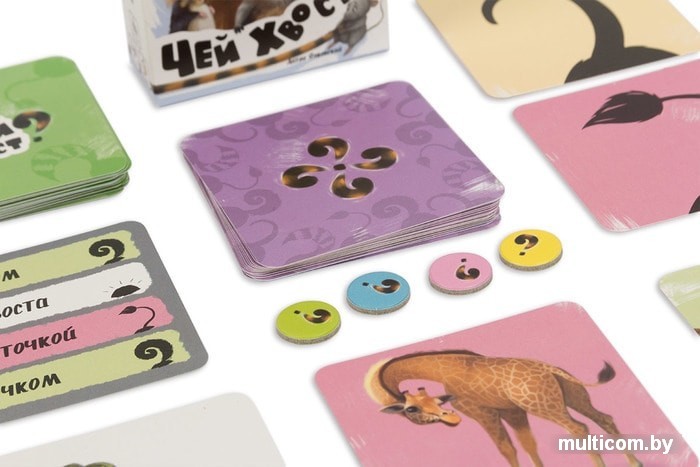 | Комплектация | 16 карточек животных с хвостами4 карточек хвостов (с кисточкой, полосатый, без шерсти, крючком)4 фишки игроков4 карточки животных без хвоста (для правил игры «Хвостатая команда»)18 карточек заданийПравила игры |