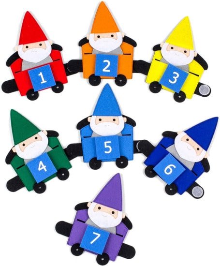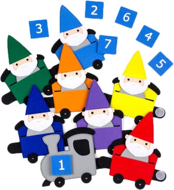 | Комплектация | Паровоз (100*80) - 1 шт; Вагон (100*70) - 7 шт; Гном (8 см)- 7 шт; Фигура с изображением цифр (30*30) - 7 шт. |