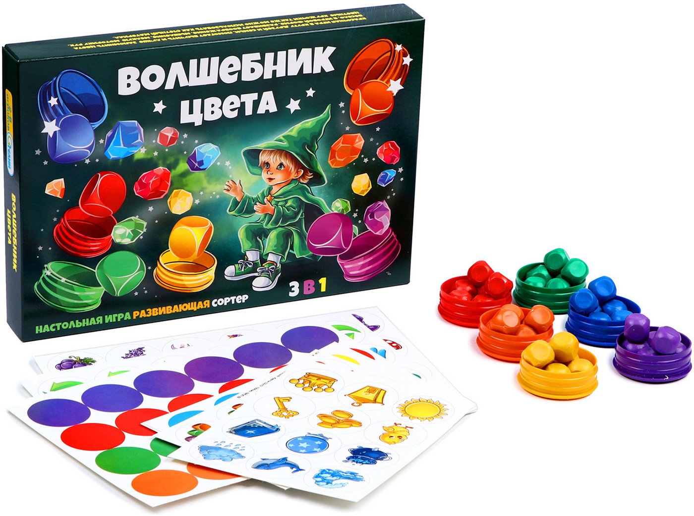 | Информация | - Развивающий игровой набор Гелий Игра+Сортер+Лото 3 в 1 10494114 предполагает 3 варианта различных игр: - Классический сортер требует баночки (магические коробочки) и кубики (камушки). Раздайте поровну каждому игроку по магической коробочке и перемешайте волшебные камушки в пакете, затем, когда игроки будут готовы, рассыпайте камушки. Выигрывает тот, кто быстрее всех соберет камушки своего цвета в соответствующей коробочке. Эту игру можно также играть карточками с картинками и цветными карточками, все зависит от вашего желания и фантазии. - Лото-сортер «съедобное-несъедобное» требует баночки (магические коробочки) и карточки с картинками. Раздайте поровну каждому игроку по магической коробочке, перемешайте карточки и вынимайте по одной, картинкой вниз. Предложите игроку отгадать, можно ли кушать то, что изображено на картинке. Если ответ верный, эта карточку можно положить в коробочку. Если нет, она кладется вниз колоды с карточками. Выигрывает тот, кто соберет первым все карточки своего цвета в своих магических коробочках. - Игра на поле «волшебник цвета» требует поле, цветные магические коробочки, волшебные камушки, карточки с картинками и цветовые кружочки. Игрок вытягивает сначала карточку с заданием, затем кубик, цветную карточку и карточку с картинкой. Если он вынимает КУБИК своего цвета, то кладет его в баночку на поле, если чужого, то кубик замораживается и игрок кладет его возле себя. Также и КАРТОЧКА С КАРТИНКОЙ своего цвета выкладывается на кружочки на поле соответственно цвету, чужие цвета замораживаются. ЦВЕТНЫЕ КРУЖОЧКИ служат для размораживания кубиков и карточек с картинками. - Комплектация: Поле, 6 цветных магических коробочек (баночек), 36 волшебных камушков (кубиков), 36 карточек с картинками, 36 цветовых кружочков, 22 карточки с заданиями (переход хода и т.д.). |