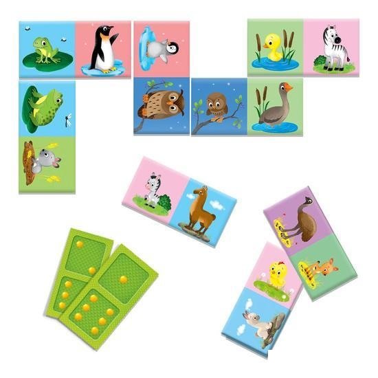 | Информация | Детское домино «Чей малыш?» расширяет кругозор и знакомит ребёнка с миром животных, развивает его память, внимательность, быстроту реакции и логическое мышление. Также во время игры малыш учится сравнивать и сопоставлять предметы. Первый вариант игры: игра с животными на тему «Мамы и детки». Цель игры - подобрать пары фишек с изображением взрослого животного и его малыша, соблюдая при этом правила игры известного классического домино. Побеждает тот игрок, у которого раньше всех закончатся фишки. Данный вариант подходит как для командной, так и для самостоятельной игры. Второй вариант игры: выстраивается цепь фишек, соприкасающихся половинками с одинаковым количеством точек, обозначающим число очков (классическое домино). |