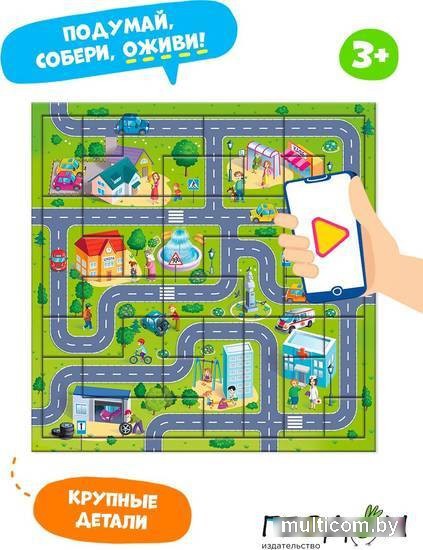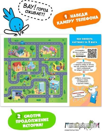 | Информация | Правильно сложите все фрагменты — и увидишь целый город. Отсканируйте QR-код, наведи камеру на изображение — и жизнь в городе уже кипит! Смотрите, что изменилось, с новым фигурным пазлом с дополненной реальностью «Город». Фигурный пазл для детей тренирует мелкую моторику, внимание, память и способствует развитию образного мышления. |