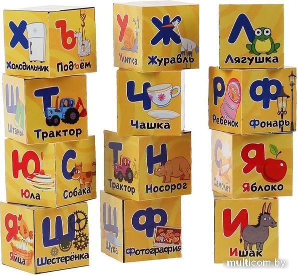 | Информация | Набор из 12-ти кубиков «Синий трактор. Азбука» ТМ «Играем вместе» станет прекрасным развивающим подарком для малыша: 12 кубиков в комплекте; красочные буквы и слова; яркий дизайн; любимые герои; легкие материалы. Кубики — одна из первых игрушек малыша, занимающая важное место в его развитии. С красивыми кубиками, входящими в этот набор, ребенок быстро выучит буквы и слова, начинающиеся на них. |