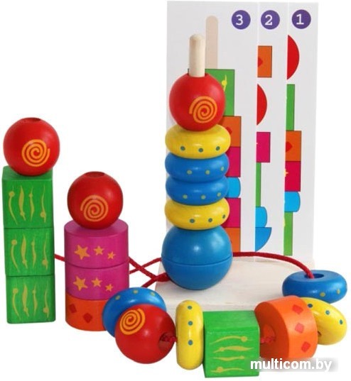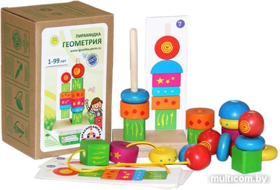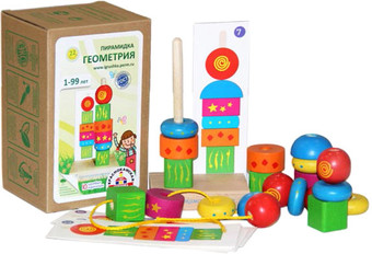 | Комплектация | 22 геометрические фигуры, подставка, 10 карточек с заданиями, шнурок |