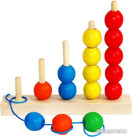 | Информация | Деревянная платформа с 5-тью разноуровневыми штырьками, на которые нанизываются разноцветные шарики. В игре с такой пирамидкой малыши учатся считать, различать и называть цвета. Может использоваться в качестве шнуровки. Развивает: мелкую моторику рук, координацию движений, умение различать цвета, первоначальные счетные навыки. |