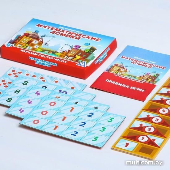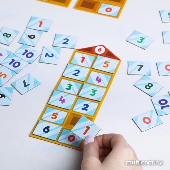 | Информация | Чтобы научиться быстро считать и выполнять простые арифметические действия, малыш должен заниматься и освоить через игровую форму состав числа. С этой игрой ребенок легко освоит счет от 1 до 5, а после и до 10, познакомится с составом числа и научится соединять цифры, объясняя элементарное сложение. Описание домиков: Все домики имеют 2 стороны, поэтому вы можете использовать обе. В некоторых окошках на одной стороне домиков есть цифры, на другой — они пустые. При изучении состава числа сначала поработайте с поверхностью, на которой домики частично заполнены цифрами. Проверить себя можно с помощью обратной стороны. Также в наборе есть полностью пустой домик без цифры на крыше. Его используйте для изучения состава числа по точкам. 1-й вариант. Знакомимся с цифрами по точкам (для самых маленьких) Для начала возьмите только карточки с точками. Положите перед ребенком карточку с одной точкой и спросите его — это много или мало? Попросите малыша показать один пальчик и сделайте акцент на том, что он один. Чтобы закрепить знания, попросите кроху выложить карточки с точками по порядку от 0 до 5 (а затем в обратном порядке). Сделать это можно на столе или воспользоваться пустым домиком. О том, как изучать состав числа и какие существуют еще варианты игры, вы сможете прочитать в правилах. Внутри вы найдете: 11 домиков разного размера; 33 карточки с цифрами; 18 карточек с точками; правила игры. |