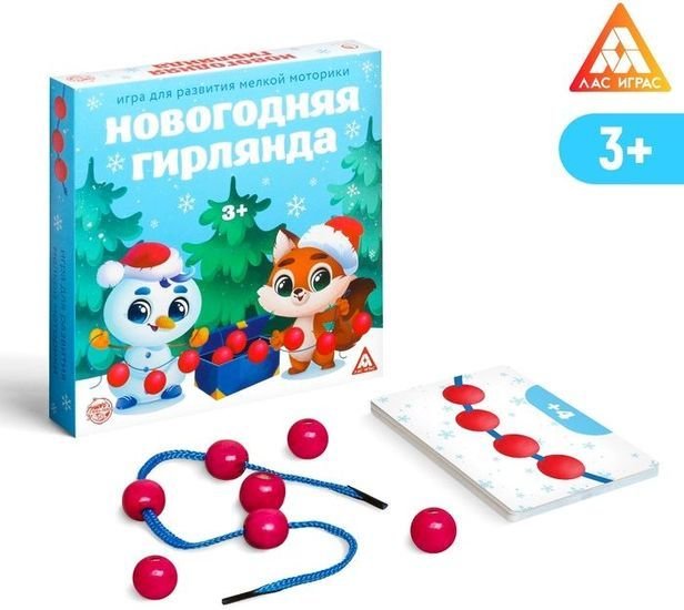 | Информация | Игра на развитие мелкой моторики Загляните в коробочку с елочными игрушками — сколько здесь бусинок от гирлянды! Зверята очень хотят украсить свою елочку, но для этого нужно собрать бусинки и нанизать их на шнурки. Давайте поможем животным встретить Новый год с красивой елочкой! Как играть? На карточках ребенок найдет легкие задания для самых маленьких, выполняя которые, он научится считать, а нанизывая бусинки на шнурки, кроха потренирует мелкую моторику рук. Игра развивает умение считать, внимательность, коммуникативные навыки и моторику. Внутри вы найдете:коробочку, 4 шнурка, 28 бусинок, 24 карточки с заданиями, правила игры. Встречайте Новый год вместе с ЛАС ИГРАС! |