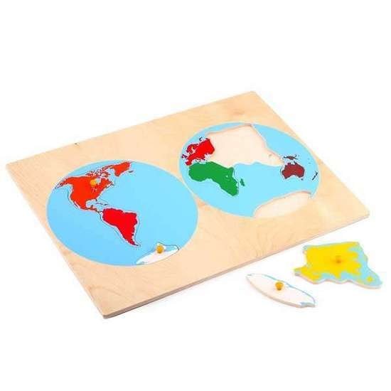 | Информация | Пособие представляет собой деревянный планшет размером 50х36,5 см, на котором размещена карта - графическая плоскостная модель двух полушарий земного шара с восьми вкладышами-континентами, окрашенными в различные цвета. Для удобства вкладыши-континенты снабжены ручками-кнопками. Каждый вкладыш соответствует определённому континенту, подняв который можно будет узнать его названиеДанная игрушка поможет вашему малышу в игровой и доступной форме освоить расположение континентов, а Ваши знания и его фантазия - ощутить себя в роли путешественника и совершить кругосветное путешествие. |