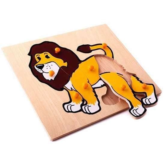 | Информация | Мозаика "Лев" представляет собой деревянный планшет размером 24х24 см, на котором изображена разборная картинка в виде льва, состоящая из пяти элементов, к каждому из которых прикреплена удобная ручка.Игра с данной мозаикой способствует развитию у ребенка логического мышления, внимания, памяти, воображения. Называйте малышу части тела животного, которые они вкладывают в планшет, расскажите о животном, изображенном на картинке. |