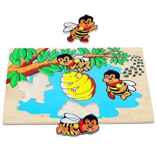 | Информация | Вкладыш "Пчелы" собой деревянный планшет размером 29,5х20,5 см, изображающий четырех забавных пчелок вокруг гнезда, висящего на ветке дерева. Для удобства использования и стимуляции развития мелкой моторики вкладыши снабжены ручками-кнопочками.Игры с пчелками развивают знания ребенка об окружающем мире, формируют коммуникативные навыки и умения, пространственные представления, развивают наблюдательность и произвольное запоминание. Спрашивайте у ребенка, сколько пчел улетело (прилетело), где находится пчелка относительно улья (других пчел). В игровой форме знакомьте ребенка с лексическим разнообразием (словообразованием) слов, в частности глаголов: составляйте глагольные пары (синонимы и антонимы) лететь-прилететь-улететь. |