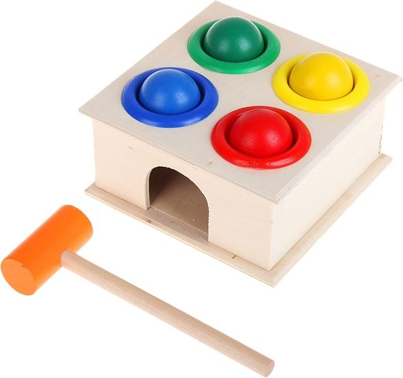 | Информация | Что может быть лучше игрушек, изготовленных из экологически чистого материала – дерева, окрашенного яркими нетоксичными красками? Родители ценят такие игры за их безопасность и развивающую функцию, а малыши любят всё красочное – им непременно захочется исследовать и попробовать на практике, как же устроена квадратная стучалка с 4 шариками.Юный испытатель берет в руки деревянный молоток, который входит в комплект, и забивает им шарик в отверстие. Когда достигнута цель, и круглый элемент попал в лунку, он выкатывается из коробочки! То же самое проделывается с остальными тремя шарами. Такое увлекательное и захватывающее занятие развивает у малышей мелкую моторику, координацию движений и целеустремленность, а также тренирует мышцы рук. |