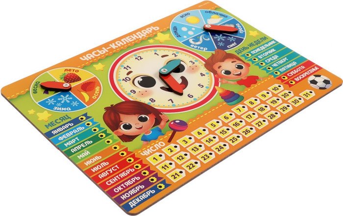 | Информация | ? Экологичный материал — дерево, обеспечивает прочность и надежность игры. ? Развивает мелкую моторику, логическое мышление и умение определять время по часам. ? Помогает детям различать времена года, месяцы, дни недели и время суток. ?? Малыши дошкольного возраста с удовольствием расширят свои знания с этой игрой. |