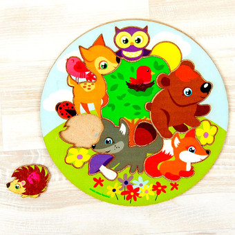 | Информация | Головоломка для самого умного малыша! Перед началом игры предложите ребенку назвать все элементы картинки, их отличительные черты. Затем поместите фигурки на соответствующие места. Чтобы малышу было интереснее, придумайте захватывающую историю (как зовут зверят, куда они все идут и т.д.). Во время игры ребенок знакомится с формами и цветами, развивает мелкую моторику, внимательность и усидчивость, изучает соотношение "больше-меньше".Состав: Бумага, картон, фанера Размер упаковки: 20,5 см х 20,5 см х 0,5 см Количество элементов: 14 |