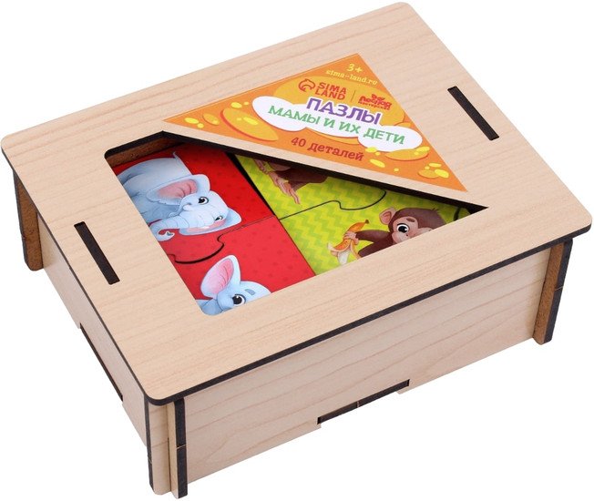 | Информация | ? Поможет крохе выучить названия животных и их детёнышей без труда. ? В наборе 40 деталей — 20 пар. ? Все элементы выполнены из дерева, что делает их прочными и безопасными. ? Пазлы не заминаются и не рвутся в процессе игры, поэтому их хватит надолго. ?? Картинки сочные и яркие, печать не стирается. ? Развивает логическое мышление и кратковременную память. ? Тренирует усидчивость и мелкую моторику рук. ? Учит различать цвета и находить связь между частью и целым. |