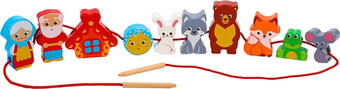 | Информация | Шнуровка-сказка 2в1 - это простая, но интересная игра, которая обязательно увлечет малыша! Цель игры: нанизать на шнурок все разноцветные бусинки, выполненные в виде персонажей популярных детских сказок "Теремок" и "Колобок". |