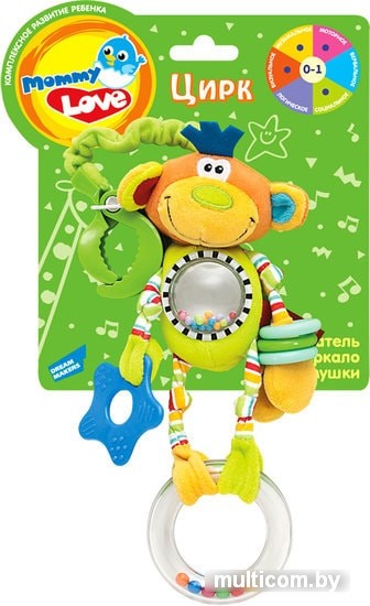 | Информация | Особенности:- представлена в виде забавной обезьянки, изготовленной из разноцветного текстиля.- может крепиться на развивающие коврики, дуги, коляски, кроватки.- оснащена погремушками (животик, хвостик, цирковое колечко), прорезывателями, шелестящим элементом (ушки), зеркальцем. Развивающая подвеска Mommy Love "Цирк" обязательно понравится вашему малышу. Она надежно подвешивается на кроватку или коляску так, что малыш может разглядывать ее и трогать, а также использовать ее как прорезыватель для зубов. Возьмите игрушку на прогулку с малышом и ему точно не будет скучно в коляске. |