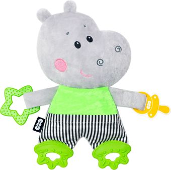 | Информация | Подвеска Бегемотик Димочка станет любимой игрушкой малыша, а ее многофункциональность придется по душе родителям. Благодаря крепкой липучке, игрушка удобно крепится к коляске и автокреслу позволяя брать ее с собой на прогулки и в путешествия. Прикрепив Бегемотика к кроватке ребенка, вы надолго заинтересуете его красочным и милым персонажем, внутри которого забавная шуршалка, издающая смешные звуки. Мягкие грызунки на лапках облегчат дискомфорт при прорезывании зубов малыша. Кроме того, Бегемотик Димочка имеет удобный держатель для пустышки — прикрепите соску к лапке погремушки для новорожденного, сохранив ее от загрязнений и потери. Димочка поможет в развитии мелкой моторики ручек малыша, которая очень важна для правильного формирования речевых центров, координации и внимания. Игрушка-подвеска — это замечательный подарок, который будет уместен как для новорожденного, так и для ребенка постарше. Универсальная расцветка мягкого бегемотика прекрасно подойдет как для мальчиков, так и для девочек. |