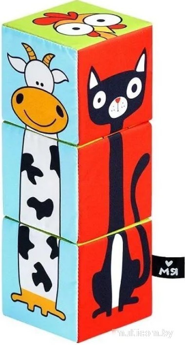 | Информация | - Развивающая игрушка "Мяшечки Домашние животные" М101 состоит из 3 крупных текстильных кубиков, каждая грань которых окрашена в свой цвет и представляет фрагмент изображения домашних животных - котика, поросенка, собаку, корову, курочку и козу. - Первые игры с этой игрушкой помогают развивать мышление, мелкую и крупную моторику, представление о цветах и формах, а также обогащают словарный запас. - Рассказывайте малышу, кого он видит на картинках. |