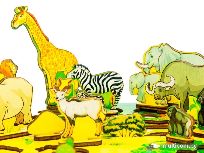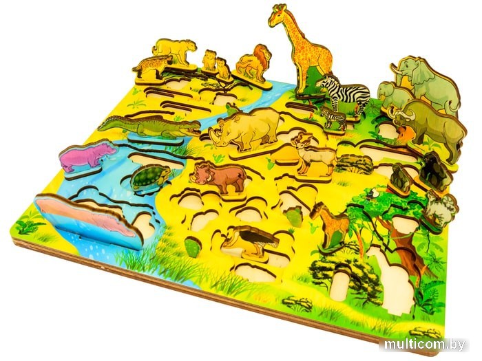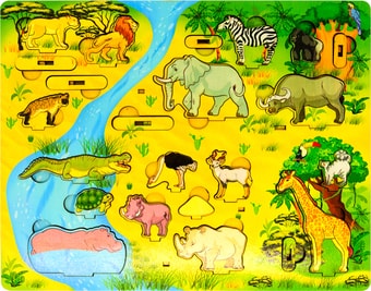 | Информация | Деревянная доска "Водопой на Лимпопо" - это игровая панель для развития мелкой моторики, внимания, усидчивости и воображения Вашего малыша, на которой расположен маленький настольный африканский сафари-парк и его обитатели: львы, гиена, крокодил, черепаха, бегемоты, кабан, носорог, антилопа куду, страус, зебры, слоны, обезьяны, буйвол, лемур, жирафы. Вместе внимательно раасмотрите игровое поле, спросите ребенка, каких животных он видит, где они живут, помогите малышу, если Ваши вопросы вызывают затруднения. Обсудите особенности разных животных. По каким признакам мы их узнаем? Жирафа - по очень длинной шее, черепаху - по панцирю, зебру по полосатой окраске, льва по гриве, слона - по хоботу и бивням и т.д.Достаньте животных из ячеек и расставьте их на подставки. Сколько детенышей в семье львов? Сколько слонят у слонихи? Как называют детенышей жирафа и зебры? Попросите ребенка показать Вам сначала хищных животных, потом травоядных. Почему они так называются? Передвигая животных по игровой доске, придумайте увлекательные истории о том, как звери идут на водопой. Вспомните сказки про африканских животных, например "Почему у слона длинный нос?", "Почему у жирафа длинная шея" и другие. Вместе прочитайте их или послушайте on-line. Попробуйте разыграть сценки из этих сказок, используя персонажей игровой доски.Перед окончанием игры покажите ребенку, как правильно размещать вкладыши в ячейках, и предложите ему сделать это самостоятельно. |