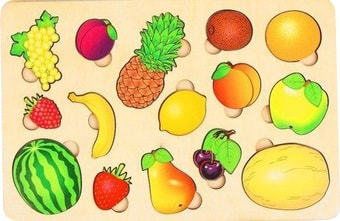 | Информация | Классическая доска с вкладышами.Все фигурки фруктов вынимаются (рисунка на подложке нет).Данную игру отличает большое количество вкладышей и узнаваемость фруктов.Во время игры с доской с вкладышами фруктов ребенок, с одной стороны, познакомится с названиями различных фруктов, а, с другой стороны, потренирует мелкую моторику рук и глазомер. |