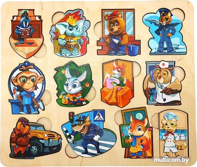 | Информация | Развивающая доска Кто есть кто? Профессии - это игровая панель для развития логики, мелкой моторики, внимания, усидчивости и воображения Вашего малыша. Верхние вкладыши - животные в образе представителей разных профессий. Под ними расположены предметы, которые используются в этих профессиях. Вкладыши с предметами также можно вынимать. С таким набором можно проводить игры с детьми разного уровня подготовки. Использовать вкладыши можно как вместе с доской, так и отдельно. В ходе занятий с доской "Кто есть кто?" ребенок, с одной стороны, познакомится с названиями профессий, узнает, кто какие предметы использует в работе, а, с другой стороны, потренирует мелкую моторику рук и глазомер. 12 деталей с изображениями представителей разных профессий и 12 деталей с изображениями предметов и инструментов, которые представители различных профессий используют в своей деятельности. |