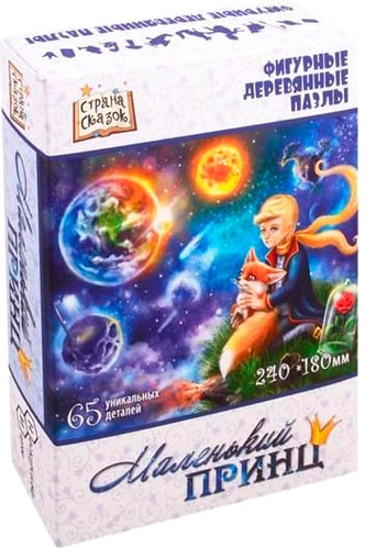 | Информация | Пазл Нескучные игры Маленький принц / 8235 отличается от стандартного необычной формой деталей. Кроме того, часть деталей выполнены в форме предметов, связанных с тематикой картинки. В данном случае это герои и предметы, связанные с историей про Маленького принца: роза, лис, барашек, самолет... Детали пазла выполнены из фанеры. Рисунок нанесен прямо на дерево с помощью специального принтера, он долговечен и не сотрется даже после многократных сборок. Такой пазл понравится и детям и взрослым, ведь сборка доставляет визуальное и тактильное удовольствие. |
