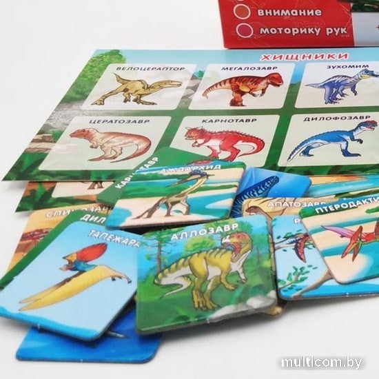 | Информация | Детское лото "Динозавры" представляет собой набор разделенных на квадраты полей-карточек с изображениями различных динозавров и фишек карточек, совпадающих с изображениями на полях.Игрокам раздаются игровые поля по видам динозавров. Ведущий вытаскивает из специального мешочка фишку и громко называет изображенного на картинке динозавра. Кто нашел на своем поле соответствующее изображение, забирает фишку себе. При этом, в процессе игры ребенок может рассказать про того или иного динозавра. Так продолжается до тех пор, пока кто-либо из участников не закроет фишками все игровое поле. Он и является победителем. Можно называть изображенный внутри буквы предмет или героя, для усложнения игры и веселья.С помощью карточек цифр и математических знаков можно решать простейшие задачи. Лото умножает знания малыша, развивает его внимание, память, мышление, речь, расширяет кругозор и словарный запас. |