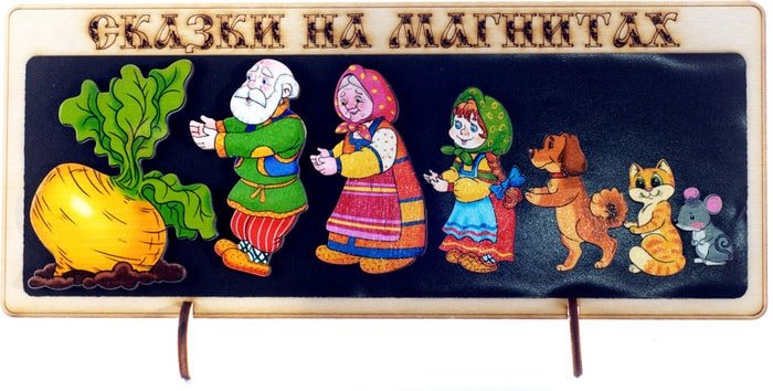 | Информация | Каждая игра комплектуется подставкой.Фигурки выпилены из фанеры,магнит гибкий виниловый.Цель игрушки: сюжетная игра.Играть можно на домашнем холодильнике, магнитной доске, а можно на планшетке, которая входит в набор.Ее размер 29х12 см.На ней можно разыграть всю сказку, выстроить героев по росту, придумать продолжение истории или новую сказку с этими же героями. |