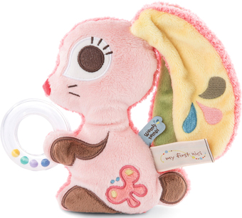 | Информация | Гопсали — веселый и милый кролик из розового мягкого плюша, он держит в своих лапках прозрачное кольцо-погремушку, которую можно трясти, наблюдая, как гремят и перекатываются шарики. Гопсали украшен вышивкой и интересными деталями — разноцветные ушки, розовый носик и смешной хвостик, за которые будет удобно хвататься малышу. Во время игры с кроликом Гопсали развивается моторика, тактильное восприятие, зрение и слух. Игрушка станет приятным компаньоном и первым другом вашему малышу. Wombi Tombi — коллекция для новорожденных и малышей линейки из My First, созданная под влиянием современного скандинавского стиля. С самого рождения малыши в игровой форме познают мир, используя все свои органы чувств. Коллекция My First специально ориентирована на нужды и потребности каждого этапа развития ребенка, развивая и стимулируя тактильное восприятие, зрение и слух с помощью выбранных игрушек. Комфортеры, погремушки, игрушки с музыкальными эффектами — на каждый этап развития малыша предназначена своя игрушка. С любовью созданные мягкие и развивающие игрушки сделаны из высококачественного плюша и разработаны опытными дизайнерами, которые сами являются родителями. |