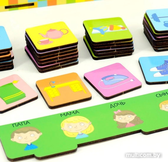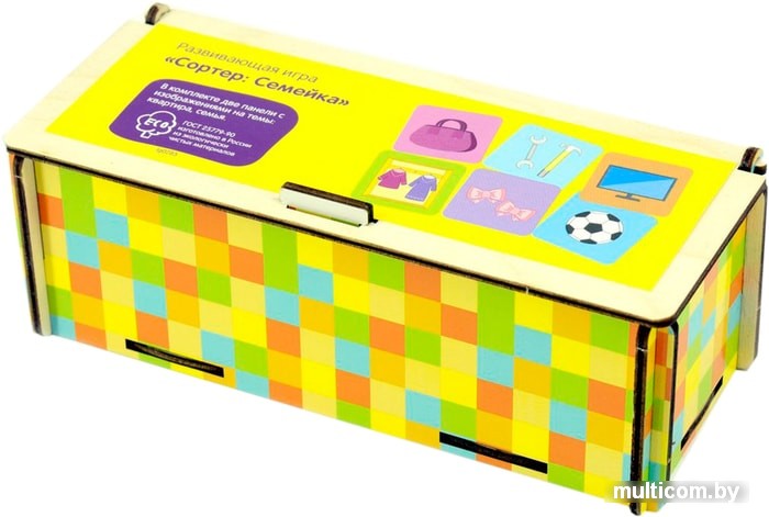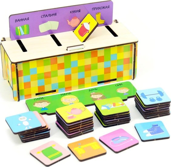 | Информация | Развивающая игрушка для детей представляет из себя коробку с прорезями, две вставляющихся панели с изображениями на разные темы и фишки с картинками.Откройте деревянную коробку и извлеките все фишки. Поместите одну из тематических панелей на сортер. Найдите вместе с ребенком фишки, которые соответствуют теме на панели, опустите в нужную прорезь. Игра с сортером способствует формированию речи малыша. Кроме того, будут развиваться тактильные ощущения, восприятие форм. |