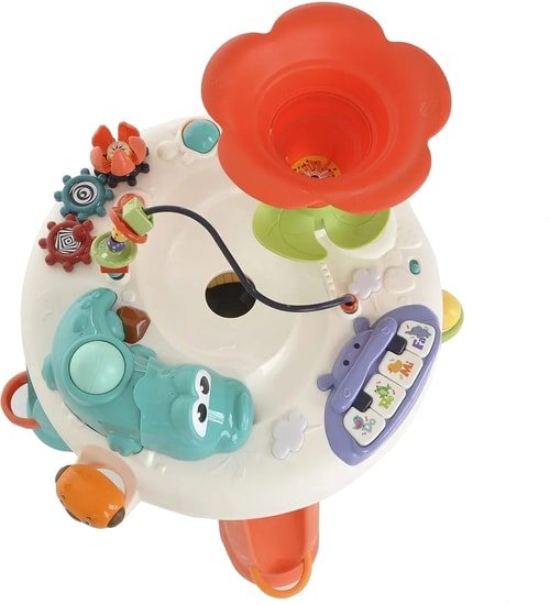 | Информация | Развивающий столик Крокодильчик — это прекрасная, универсальная игрушка для маленьких деток, которая привлечет внимание яркими красками, а также займет его внимание интересными играми надолго. Игровая панель включает в себя множество разных интересных элементов и состоит из развивающих и развлекательных игр. На игровой поверхности имеется спуск для шарика в виде цветка, рычаги и кнопочки, маленький крокодильчик и многое другое. В комплект входят три шарика и молоточек. Столик очень хорошо влияет на детское развитие: заставляет думать, развивает моторику, направляет мышление, тренирует память. |