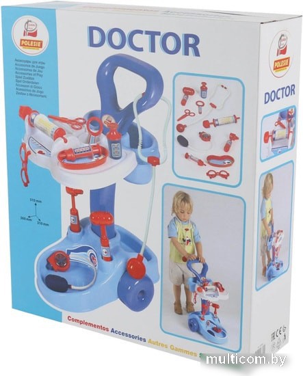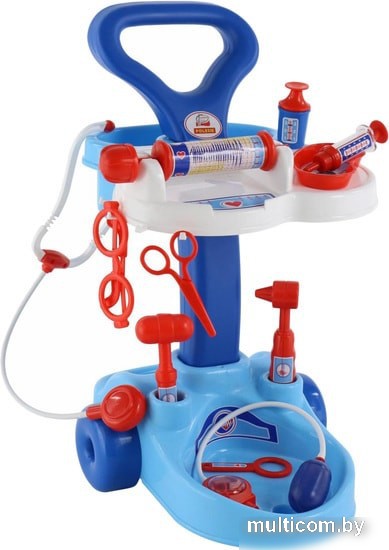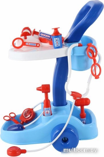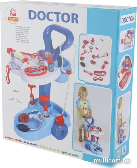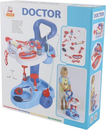 | Информация | Набор доктора на тележке достаточно мобилен и малыш сможет быстро оказать помощь своим пациентам. В этом ему помогут, входящие в набор, ножницы, очки, лупа, шприц, лоточек для шприца, стетоскоп, тонометр, фонендоскоп, молоточек, баночка с крышкой. Возможно, именно с этого набора у будущего врача начнется любовь к медицине. |