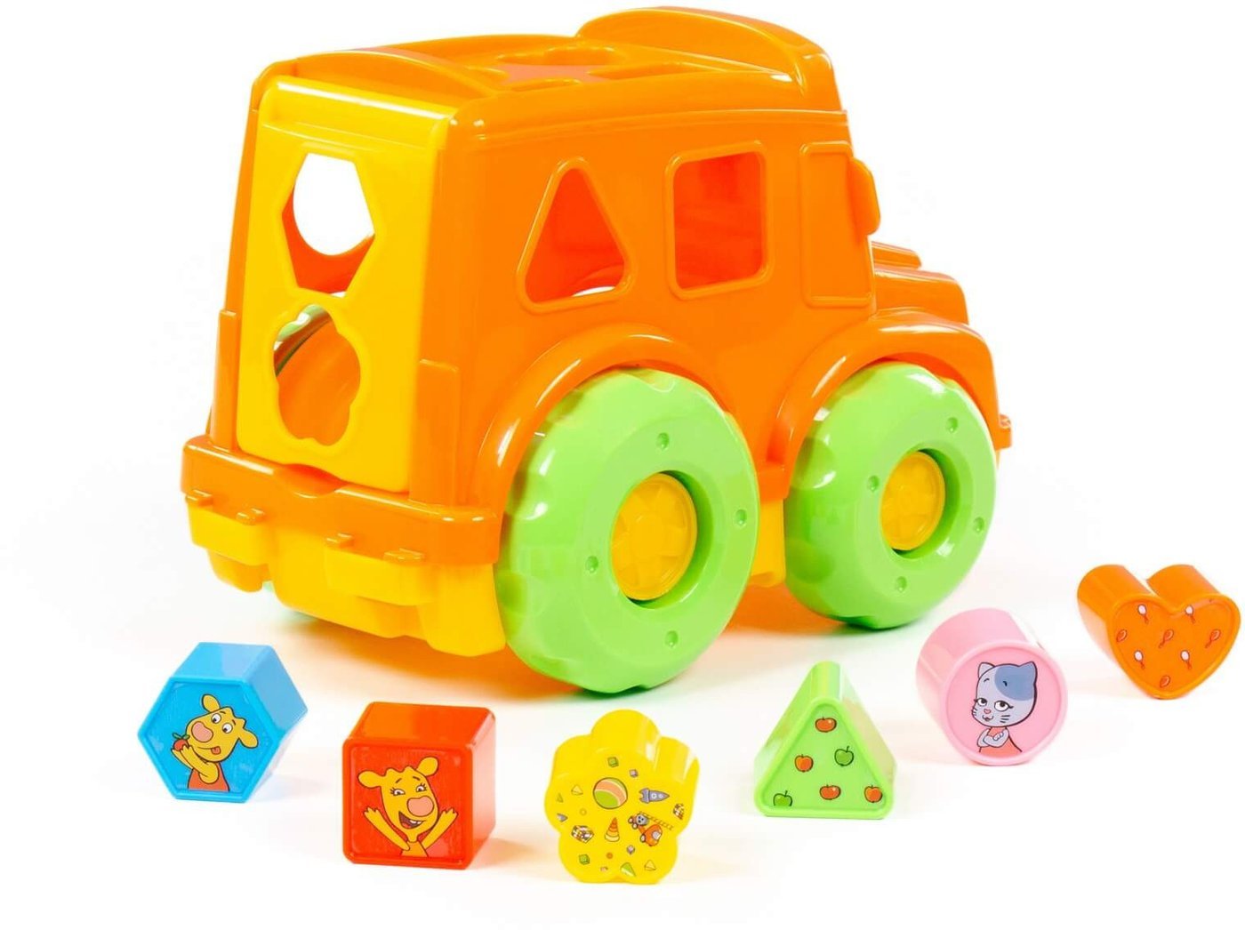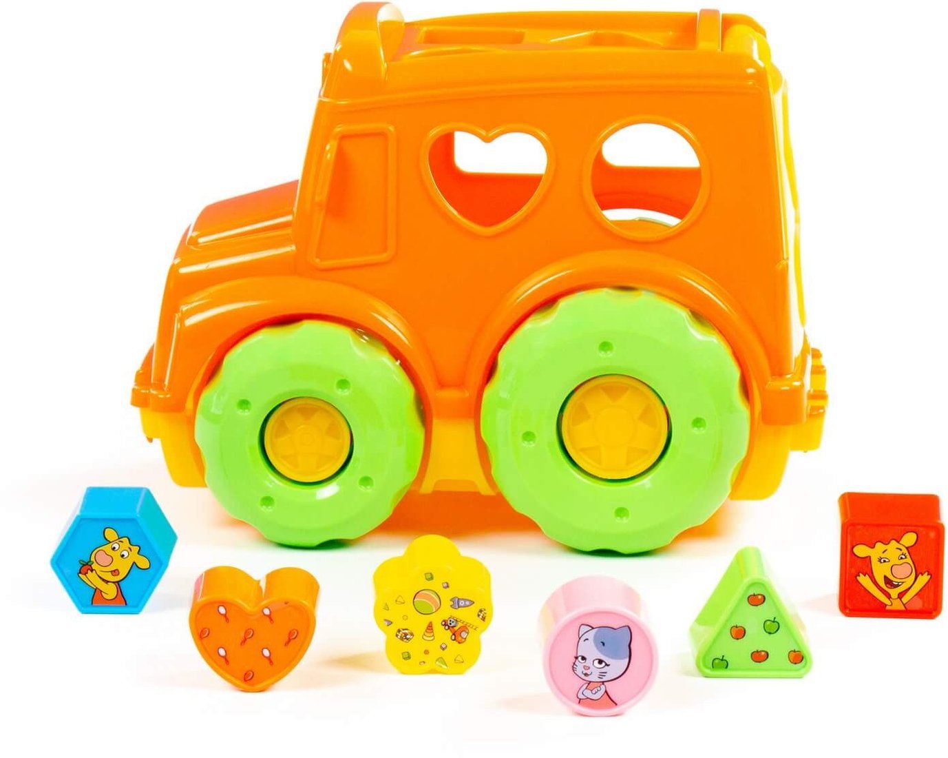 | Информация | - Любимые герои из мультсериала «Оранжевая корова» придают играм детей яркие эмоции! «Автобус» «Оранжевая корова» — это развивающая игрушка для малышей от 1 года. Кузов автобуса оснащен крышей с отверстиями различных форм, куда нужно вставлять подходящие фигурки. - В набор входят 6 фигур: круг, квадрат, треугольник, многоугольник, цветочек и сердечко. Чтобы вернуть фигурки обратно, просто откройте крышку кузова. - Надежные колеса обеспечивают отличную проходимость на разных поверхностях. Игрушка упакована в яркую коробку, что делает её отличным подарком! - Не упустите возможность порадовать своего малыша! |