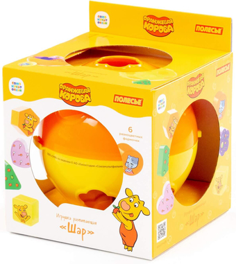 | Информация | Любимые персонажи из мультсериала «Оранжевая корова» задают хорошее настроение детским играм! «Шар» «Оранжевая корова» - развивающая игрушка для детей от 1 года. На поверхности игрушки расположены отверстия разной формы, в которые нужно поместить подходящие фигурки. В комплекте 6 фигур (круг, квадрат, треугольник, многоугольник, цветочек и сердечко). Для того, чтобы достать фигурки обратно – нужно раскрыть шар. Продается игрушка в красочной коробке. |