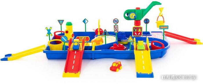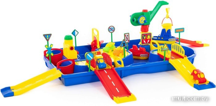 | Информация | Цвета в ассортименте.Водный мир №2 представляет собой большую емкость, куда перед игрой наливается вода. Это целый морской порт с корабликами (2шт.), автомобилями (4шт.), подъемным краном, заправкой, водяной мельницей, заслонками для воды, мостами и спусками, а также дорожными знаками (10шт.) и ведерком. |