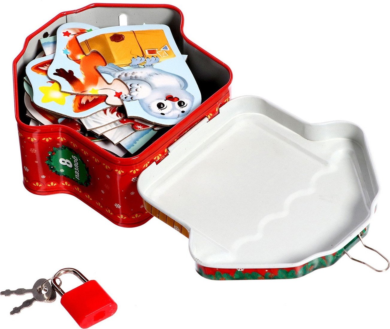 | Информация | - Макси-пазл с новогодним сюжетом — отличный подарок для занимательного времяпрепровождения! Поможет ребёнку скрасить ожидание Нового года и развить мелкую моторику, внимательность, логическое мышление и память. - Необычные элементы привлекут внимание и стимулируют познавательную активность на более высоком уровне, чем детали классической формы. - Малыш соберет все 28 деталей в одно целое и получит 8 красочных пазлов с новогодним сюжетом. Размер собранной картинки около 11 см. - Крупные детали удобно держать маленькими ручками. В прочной металлической коробочке удобно хранить пазл или мелкие игрушки ребенка. - Домик закрывается на ключ, его можно использовать как копилку. Есть отверстие для монет. Размер домика: 10?5?9.5 см. - Собирание пазлов развивает логическое мышление и кратковременную память, тренирует усидчивость и мелкую моторику рук, учит различать цвета и находить связь между частью и целым. |