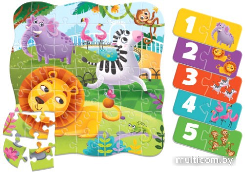 | Информация | Слон, обезьяна, зебра... Кто еще живет в зоопарке? Соберите пазл и познакомьтесь со всеми животными зоопарка. Соберите все кусочки пазла вместе, и вы увидите полную картину. Шаг за шагом малыши будут развивать логическое мышление, воображение, память и мелкую моторику. В этот набор также входит мини-игра, которая поможет малышам выучить цифры от 1 до 5. Чтобы играть, рассмотрите картинки на деталях и сопоставьте их по логическому принципу. Все детали изготовлены из высококачественного, прочного картона. Благодаря этому с деталями удобно играть, и они не гнутся. Пазл удобно брать с собой в дорогу или на прогулку. |