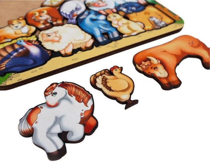 | Информация | Рамка-сортер «Животные» познакомит ребенка с животными,которые часто встречаются в жизни и сказках. Игра способствует развитию мышления, мелкой моторики, а так же координации ребенка. Все детали вырезаны из ХДФ, так что вы можете почувствовать древесный аромат. Используют высокоточные лазерные станки в производстве, что гарантирует идеальную стыковку деталей. Развивающая игрушка с животными поможет увеличить знания и словарный запас ребенка об окружающем мире, и закрепит информацию о ранее выученных цветах. Во время игры ребенок познакомиться с основными цветами, научиться различать фигуры, форму и цвет, тренировать логическое мышление и мелкую моторику. |