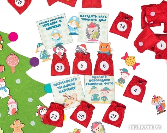 | Информация | Ожидание праздника еще более приятное и волнительное время, зачастую гораздо более волшебное и чарующее, чем сам праздник. Главный праздник для всех детей и взрослых - это Новый год. Календарь ожидания Нового года или, как его еще называют адвент календарь, поможет превратить ожидание Нового года в яркую зимнюю сказку, полную невероятных сюрпризов и чудесных открытий!Суть адвент календаря состоит в том, что ведется по дням обратный отсчет до Нового года. Причем каждый день ребенок находит в адвент календаре какой-то небольшой и приятный сюрприз, а также задание или идею досуга на текущий день. Например, предложение посмотреть какой-то новогодний мультфильм или прочитать какую-то новогодне-зимнюю сказку, спеть песенку про Новый год или отгадать загадки. Идей заданий для адвент календаря масса! Ждать Новый год становится очень интересно и весело!Адвент Календарь представляет собой елку из фетра размером 51*42 см с 31 мешочкам из фетра с нумерацией от единицы до тридцать одного, в каждом мешочке деревянная фигурка-подарок размером от 4 до 7 см. Мешочки крепятся на ёлку с помощью липучек, также липучками оснащены все деревянные фигурки, которыми можно украсить фетровую ёлку. В комплект также входят четыре ламинированные двусторонние карточки с интересными новогодними заданиями, большая раскраска форматом А3 и лист с предложенными заданиями.Объясните ребенку, что такое адвент-календарь. Верные друзья Деда Мороза помогут дождаться новогоднего праздника. Каждый новый день ожидания Нового года они будут оставлять записку с заданием в красном мешочке. За выполнение такого задания ребенка будет ожидать сюрприз (деревянная фигурка).Цифры на каждом новом мешочке будут подсказывать ребенку, сколько дней осталось до Нового года.Как играть? 1. Подготовка адвент-календаря.Заранее определите, сколько мешочков (дней) вы хотите предложить ребенку для выполнения заданий в ожидании Нового года. Помните, чем младше ребенок, тем сложнее ожидать праздника. Распределите записки с заданиями по мешочкам. Содержание заданий можно выбрать из предложенных игр (см. лист А3) или же наполнить собственными играми, творческими занятиями, семейными делами и событиями, связанными с подготовкой к Новому году (зимние прогулки, утренники, развлечения, подготовка и оформление подарков для родных и друзей, приготовление новогодних угощений по семейным рецептам и т.п.).Выбор заданий важно определить с учетом возраста ребенка, его интересов и увлечений, и, конечно, согласовать их с семейными и личными ежедневными планами. 2. Каждый день открывайте красный мешочек и находите записку с заданием. После выполнения задания адвента, похвалите ребенка за старания и вручите заслуженный сюрприз от друзей Деда Мороза (игрушку из красного мешочка).3. Выполняйте задания на ламинированных карточках, для этого используйте фломастеры, которые легко протираются на карточке влажной салфеткой.Адвент календарь разработан совместно SMILE-DECOR (РФ), магазином игрушек "Почемучка" (РБ), детским психологом О. Аксютой. |